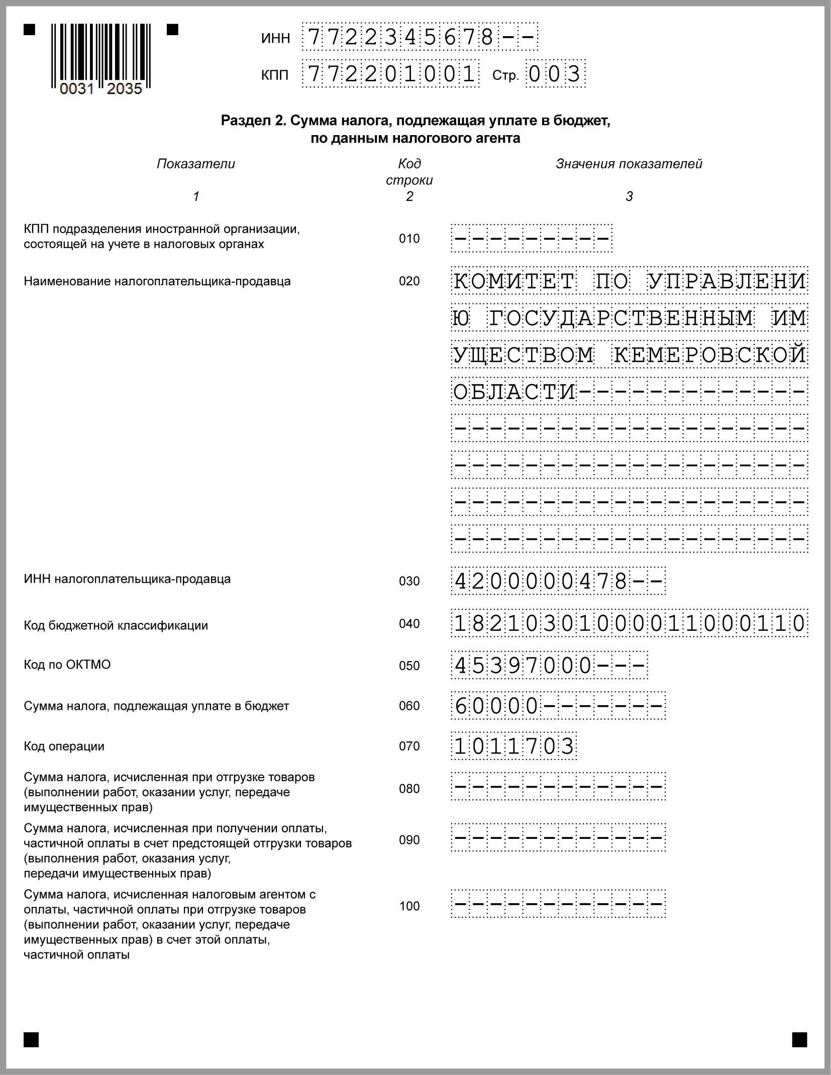По данным книги создается декларация по НДС (за квартал). Тот, кто в общем случае освобожден от НДС, заполняет в ней «агентский» раздел 2. В нем расшифровываются данные по каждому контрагенту, по которому платили агентский НДС (то есть будет столько разделов 2, сколько было контрагентов, по которым шло агентирование). (Плательщики НДС этот раздел не формируют).