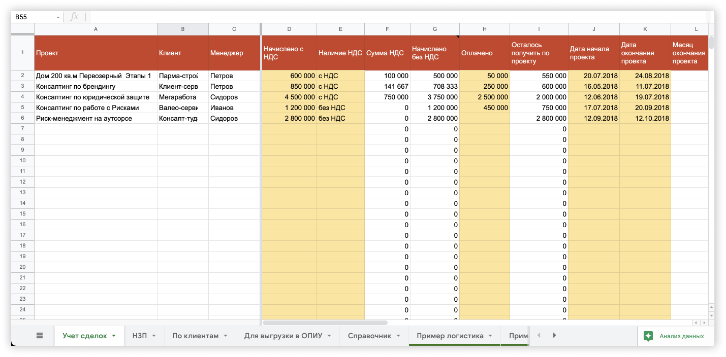 2. Поставить правильный расчёт проекта. Это поможет всегда знать, сколько вы получили денег, сколько на проект надо потратить сейчас и в будущем, сколько ещё получите с проекта. Для этого существует тот самый Учёт Сделок.