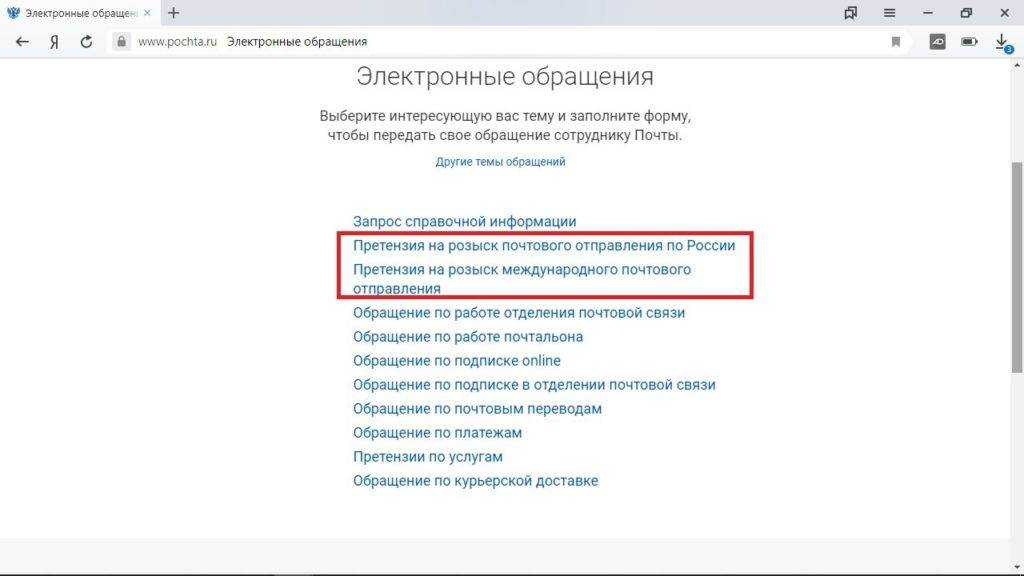 Но это не касается посылок, которые не отслеживаются на территории России. Претензию на розыск можно заполнить и отправить на сайте с помощью учетных данных от портала госуслуг или распечатать и отнести в отделение.