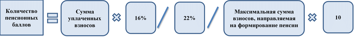Количество пенсионных баллов рассчитывается по следующей формуле.