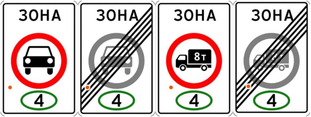 Ещё появилась табличка, обозначающая экоклассы, — выглядит как цифра, обведённая зелёным кругом. Она может сочетаться с дорожными знаками, запрещающими повороты или движение легковых машин, грузовиков или мотоциклов либо, наоборот, предписывающими двигаться прямо, направо или налево. С 2018 года таким сочетаниям должны следовать авто, чей экокласс ниже того, который указан на знаке. Например, запрет на проезд и цифра «четыре» в зелёном круге означают, что движение запрещается машинам третьего, второго, первого и нулевого экокласса.