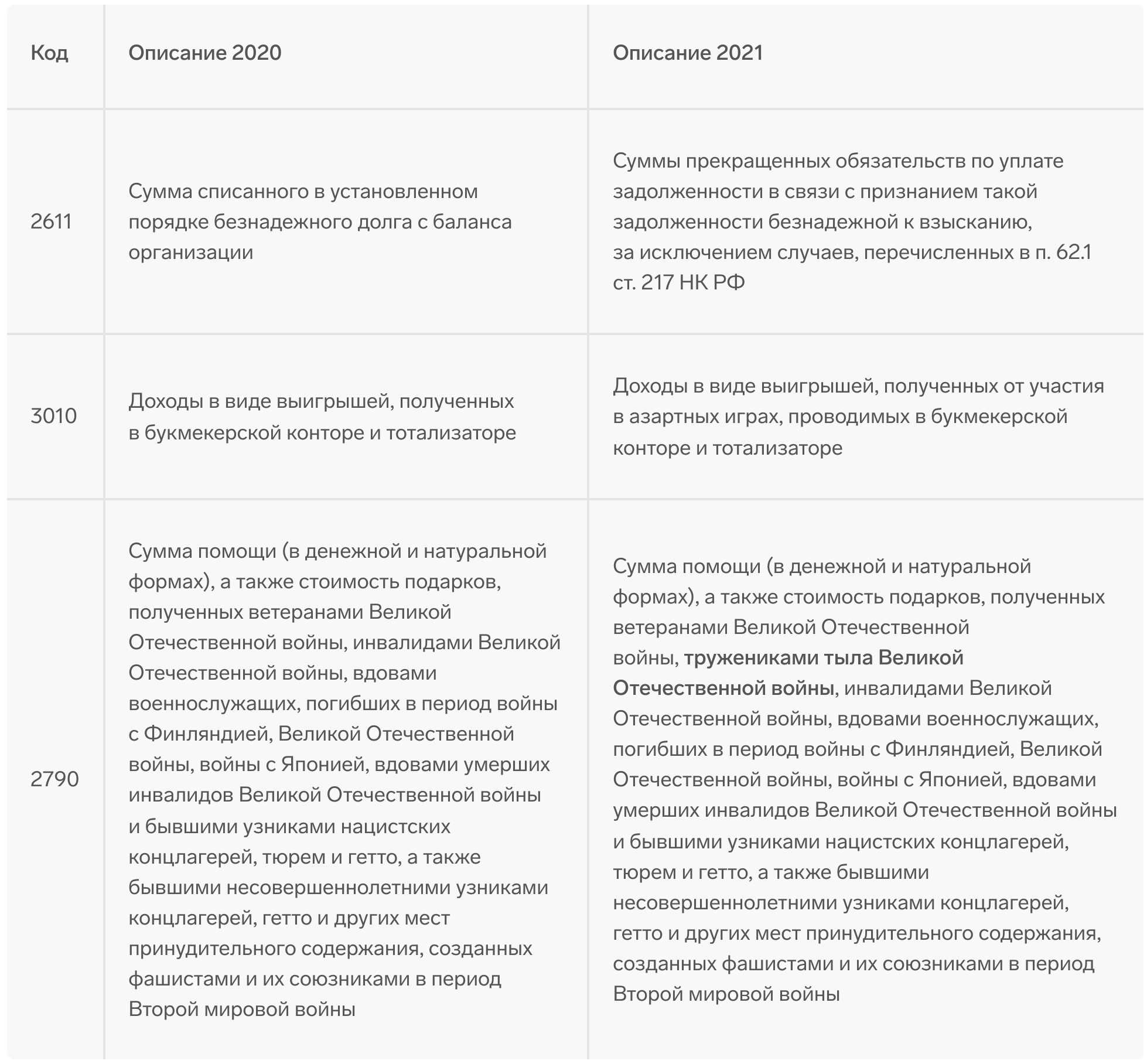 Коды доходов 2-НДФЛ, которые введены в последней редакции приказа