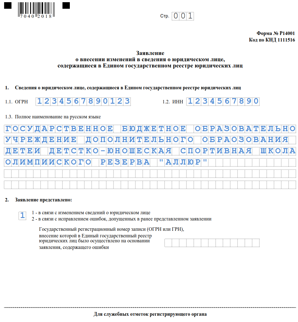 Итак, определим, как правильно заполнить заявление: пример заполнения формы 14001 при смене директора (новая форма).
