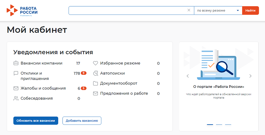 Если численность работников компании более 25 человек, то проинформировать службу занятости о вакансиях можно только через портал «Работа в России». Также обязаны использовать данный ресурс государственные и муниципальные учреждения и предприятия, а также и компании с госучастием.