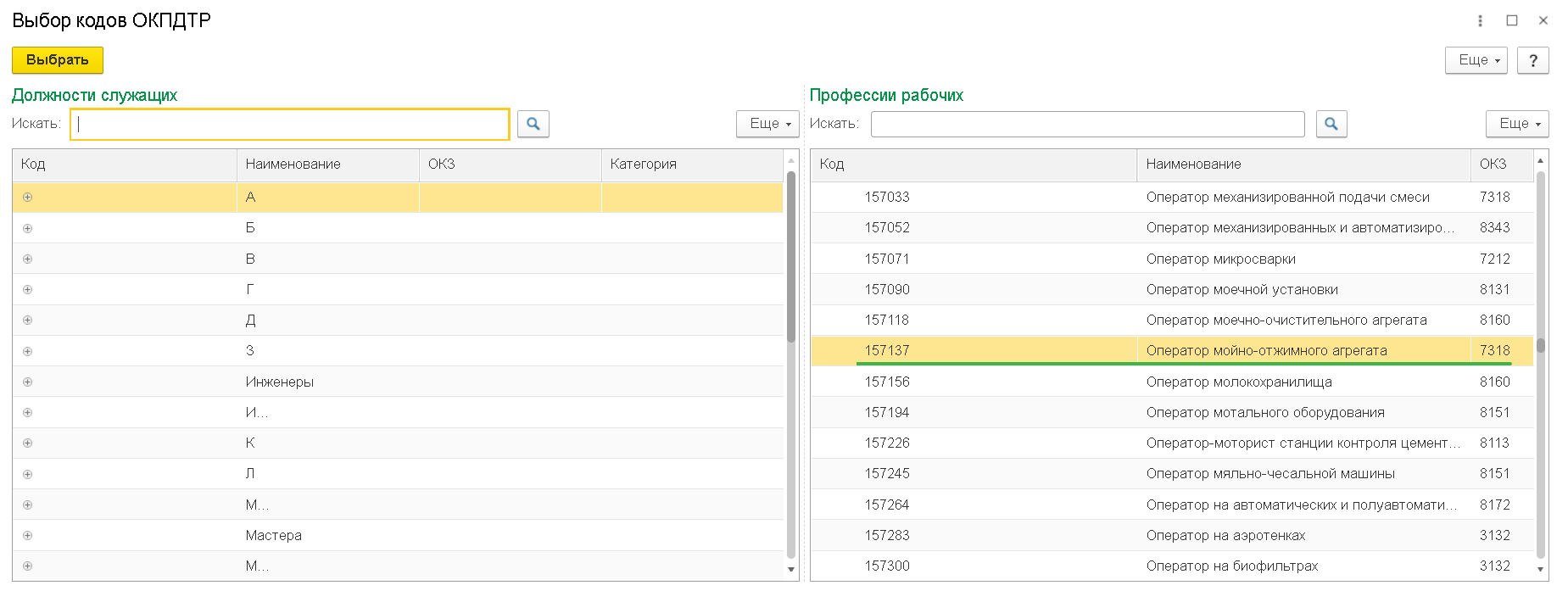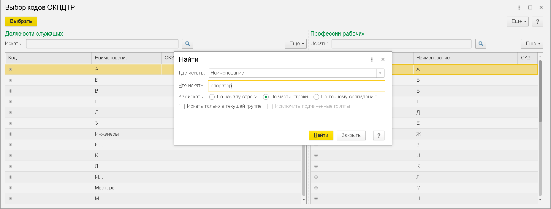 Проваливаемся в поле Код по ОКПДТР (F4 или нажимаем на выпадающий список и Показать все)