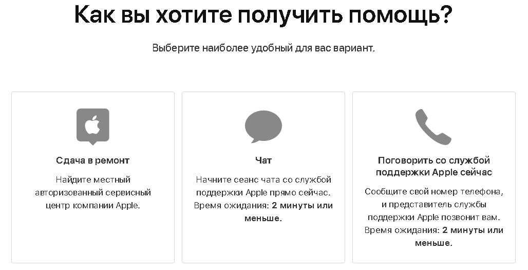 Шаг 2а. Попутно можно обратиться в офиц. поддержку Apple через сайт и описать всю ситуацию. Вам будут предложены варианты — чат или звонок.