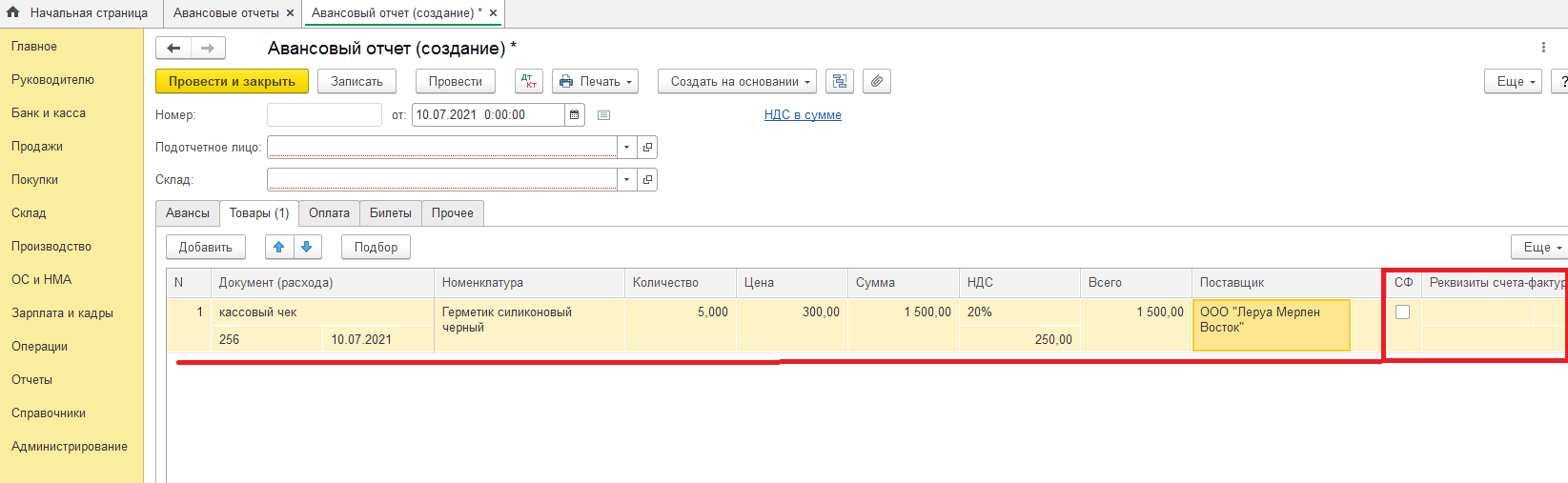 Зачастую материалы покупают подотчетные лица и приносят кассовые чеки, подтверждающие покупку. В таком случае материал можно внести через авансовый отчет. Покажем, как это сделать.