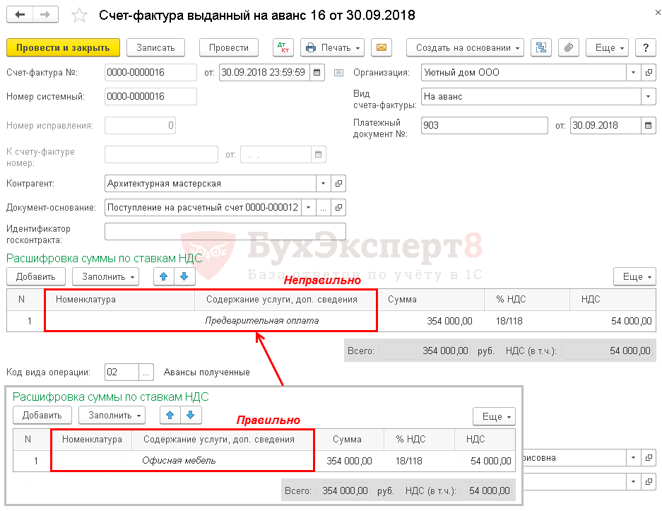 - Как сделать счет-фактуру на аванс в 1С 8.3