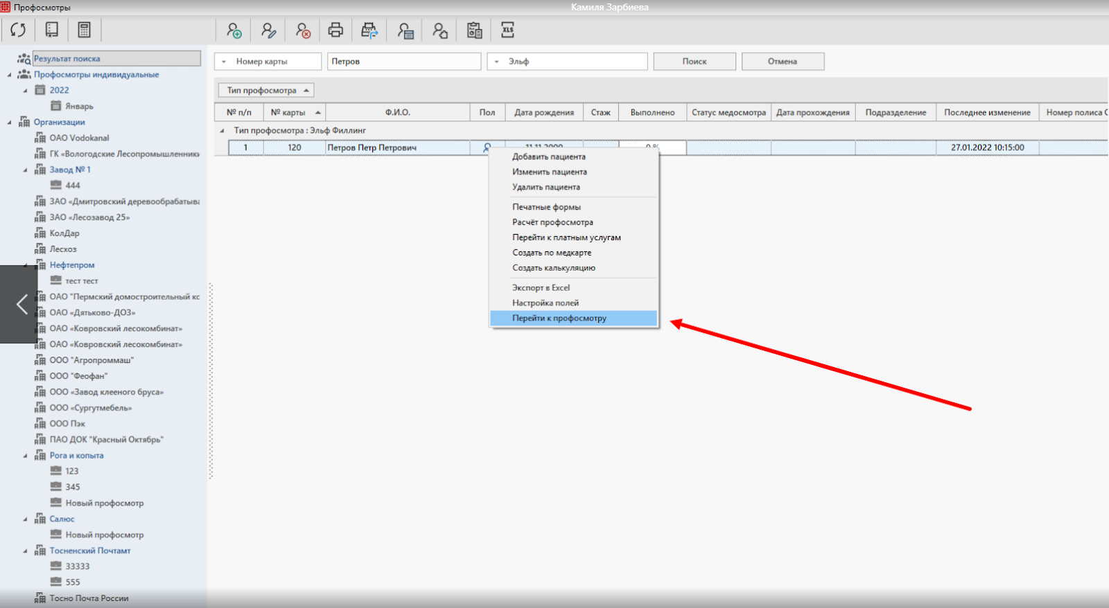 Вот что содержит модуль «Профосмотры»: