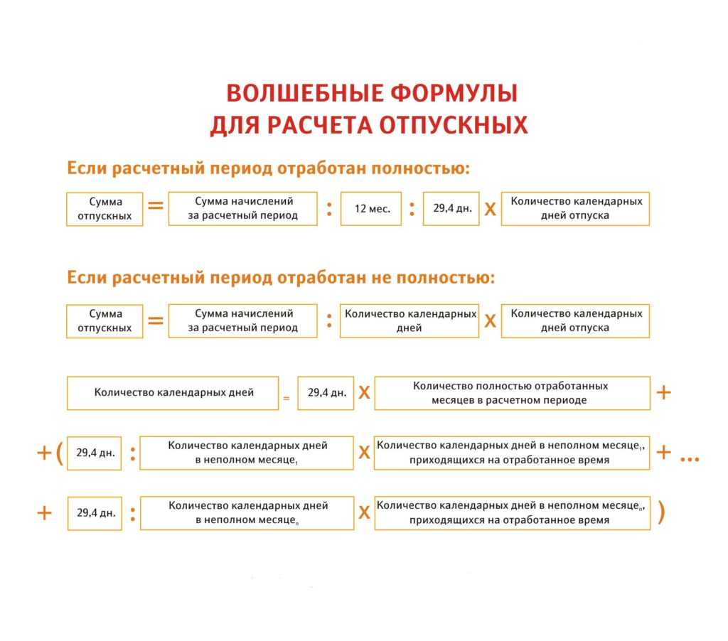 Расчетные формулы, используемые в разных случаях расчета отпускных