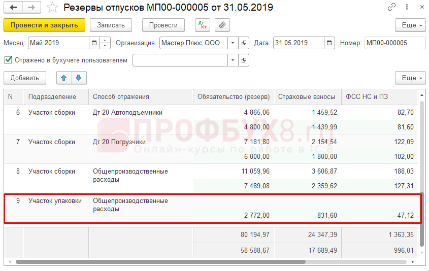 - Начисление и списание резервов отпусков на примере