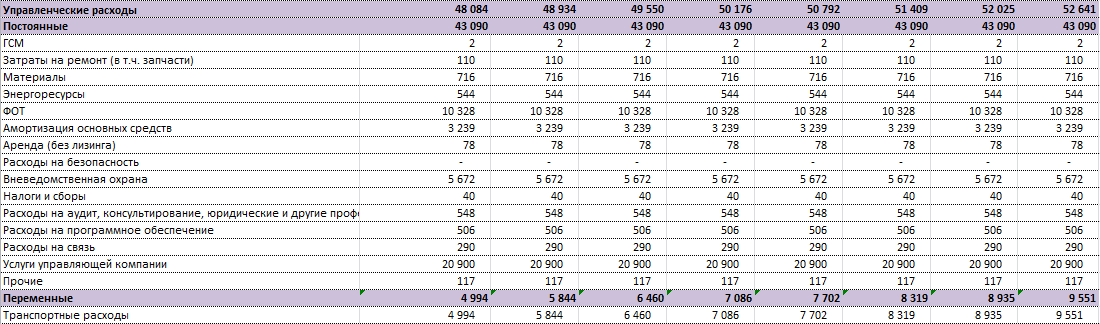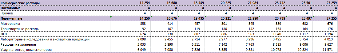 - Осуществление прогноза расходов. Постоянные расходы принимаются неизменными. Переменные расходы прогнозируются исходя из их средней доли в выручке за 2015-2017 гг. Расчет операционных расходов приведен в таблицах ниже: