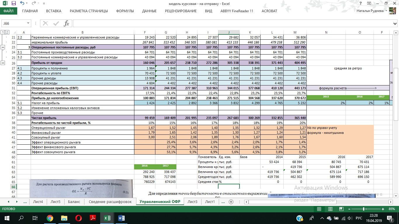 | ПР | Производственный рычаг (операционный леверидж) | % | Результат расчета |