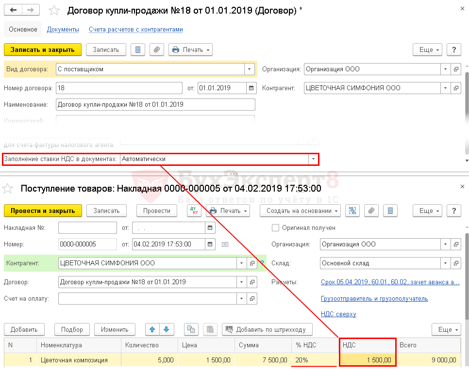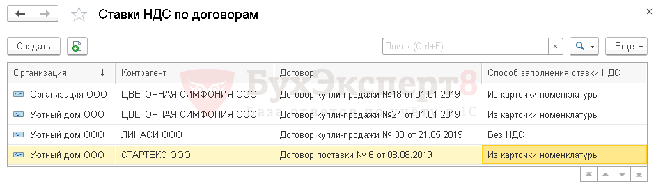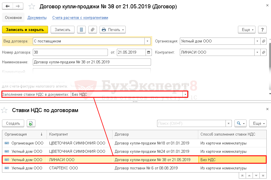 Заполнение ставки НДС в документах по договору контрагентов предусмотрено для следующих видов договоров: