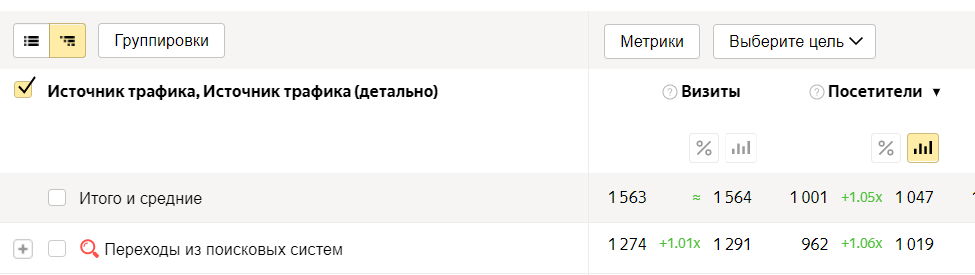 Помимо динамики трафика здесь можно отследить изменения таких метрик: