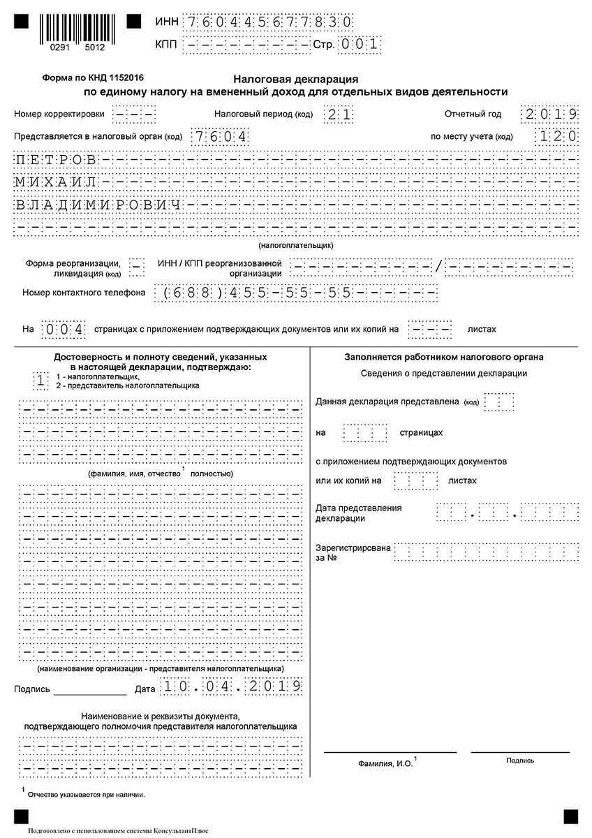 Единый налог на вмененный доход: пошаговое заполнение декларации на примере ИП (инструкция)