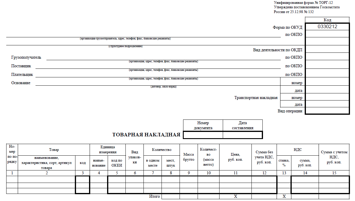 Если товарная накладная оформляется по общепринятой форме ТОРГ-12.