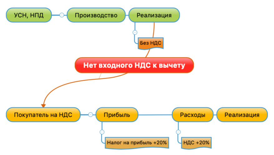 Схема при которой клиент на ОСН теряет НДС при работе с УСН и НПД