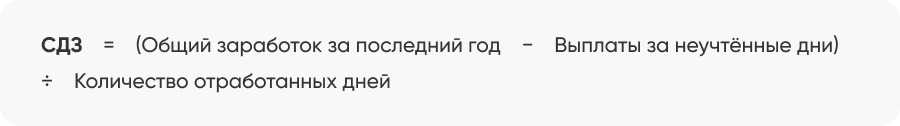 Средний дневной заработок (сокращённо — СДЗ) — это сумма, которую работник получает за каждый календарный день. Его рассчитывают по последним 12 календарным месяцам, предшествующим месяцу увольнения. Например, если сотрудник увольняется в декабре, то считать нужно с прошлого декабря по ноябрь. Вот какие правила при этом нужно учитывать: