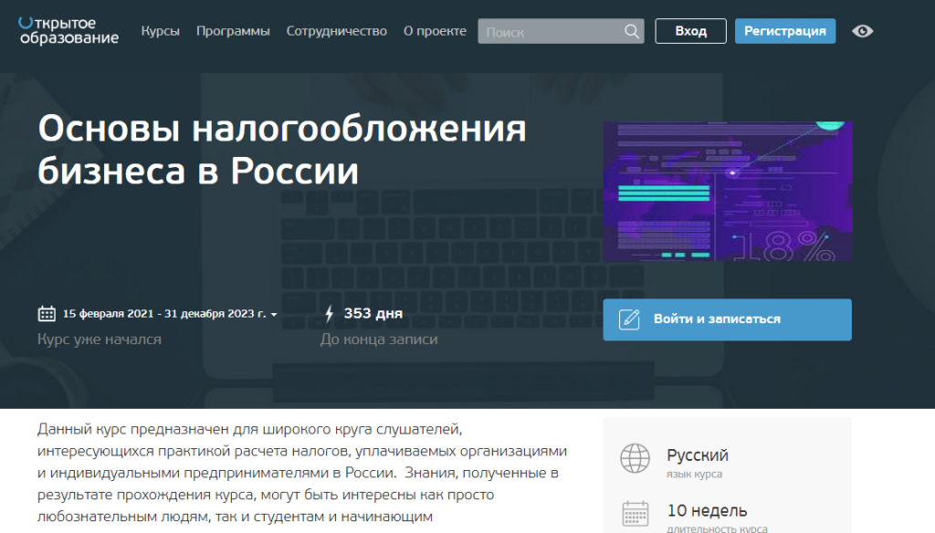 - «Основы налогообложения бизнеса в России» от СПбГУ