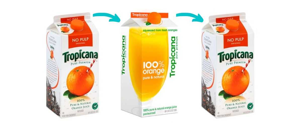 Покупатели перестали воспринимать упаковку сока без привычного изображения апельсина и трубочки и раскритиковали новую айдентику. Исходный дизайн ассоциировался с натуральностью продукта, новый же вариант с изображением стакана сока скорее вызывал мысли о переработанном продукте, кроме того прежний дизайн, включая и другие элементы, потребители знали и ориентировались на него при выборе. Этот пример говорит о том, что при изменении внешнего вида продукта нужно в первую очередь учитывать его восприятие покупателями. И если этот продукт уже пользовался спросом, не стоит убирать опознавательные знаки, по которым покупатели узнают бренд, иначе есть риск потерять клиентов.