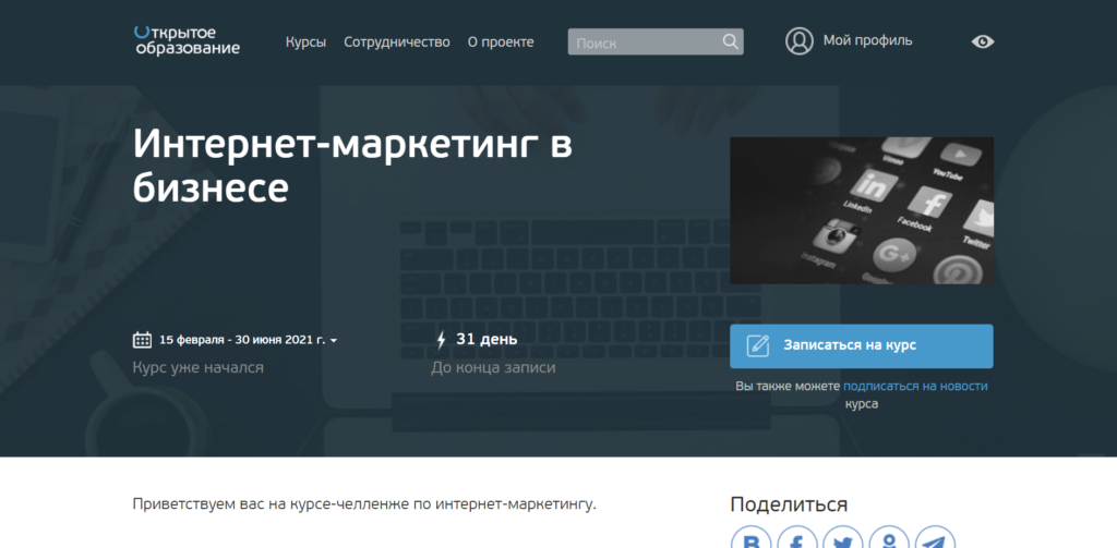 - «Интернет-маркетинг в бизнесе» от НИТУ МИСиС