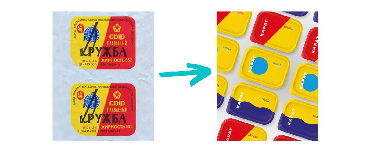 И конечно, есть и множество примеров удачного ребрендинга компании. Один из примеров в России — обновление бренда московского завода «Карат». Компания пересмотрела дизайн 15-летней давности и сделала более современную и лаконичную упаковку продукции, после чего продажи плавленых сыров «Карата» увеличились на 35%.