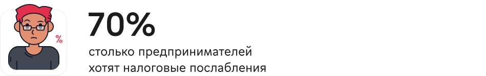 - снижение страховых взносов и налоговые послабления в виде отсрочки или отмены платежей — 70% опрошенных;
