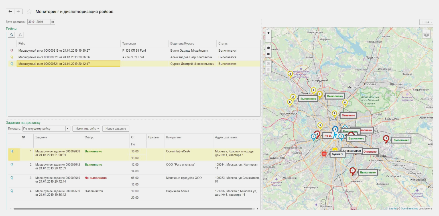 Так выглядят рейсы и маршрутные листы на рабочем месте логиста в TMS-системеСкриншот: личный архив Александра Завьялова