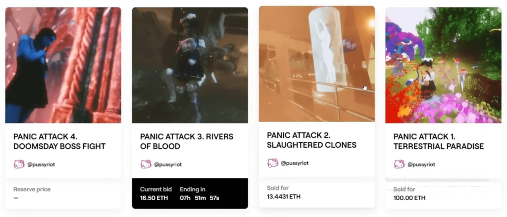 Солистки группы Pussy Riot создали клип и выложили его на платформе Foundation, разбив на четыре фрагмента и отчеканив каждый..