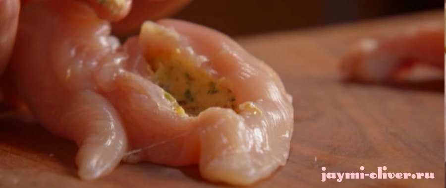 Хотя наполнитель достаточно калорийный и при диетическом питании многие отказываются от него, все же рекомендую положить внутрь хотя бы минимальное количество этого ингредиента. Либо масло заменить на сметану. В этом случае вся начинка впитается в птичью мякоть. Но дополнительно для обмакивания кусочков готового блюда вы всегда сможете использовать свои любимые соусы: томатный, гранатовый, сливовый, постный майонез и даже тар-тар домашнего приготовления.