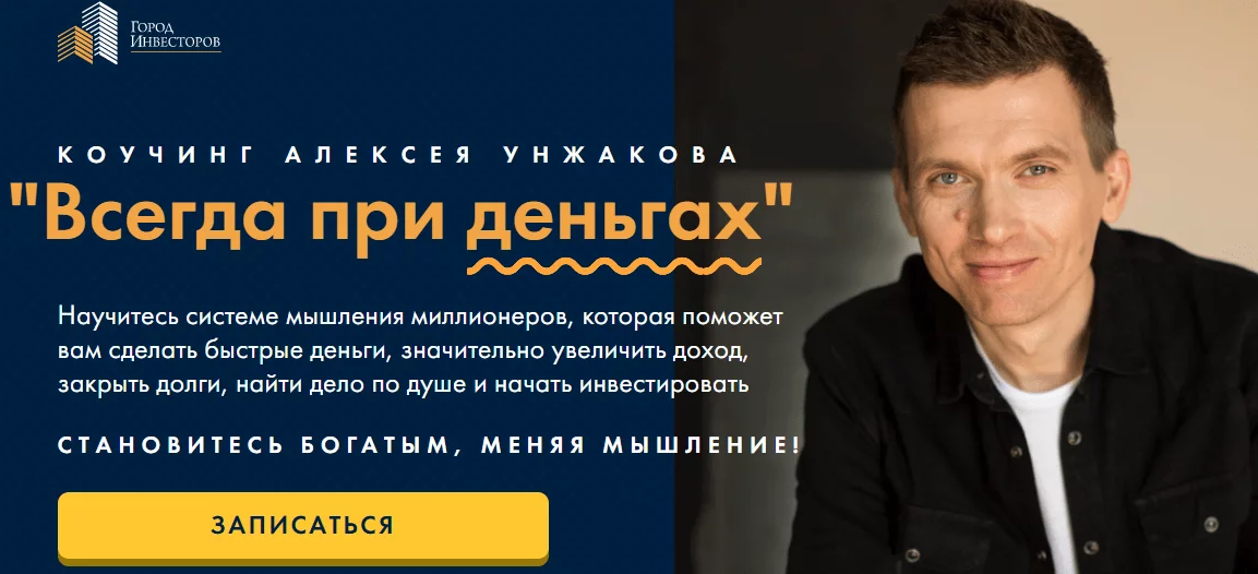 «Всегда при деньгах». Курс коучинга от создателя проекта Алексея Унжакова. Пользователям доступно 3 вида ступеней (подписок) стоимостью 30900, 54900 и 104900 рублей соответственно. В зависимости от типа выбранной подписки отличается продолжительность обучения Алексея Унжакова (2, 4 или 6 месяцев), а также доступ к некоторым «фишкам», вроде возможности лично созвониться с тренером или посмотреть обучающие видеозаписи.