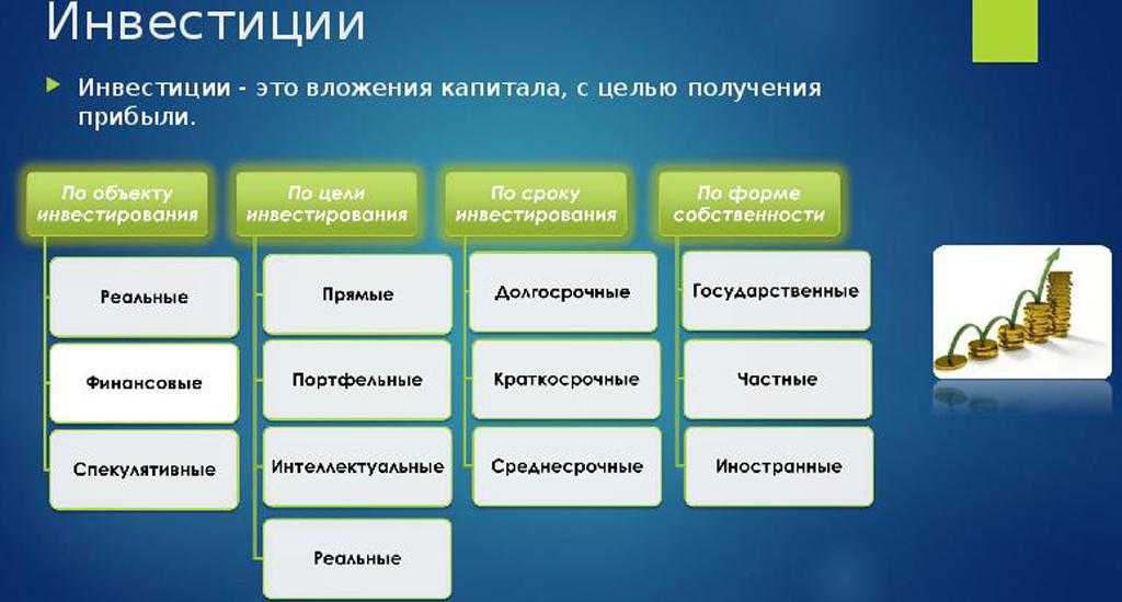 Основная характеристика инвестиций проводится по объекту вложения финансов: