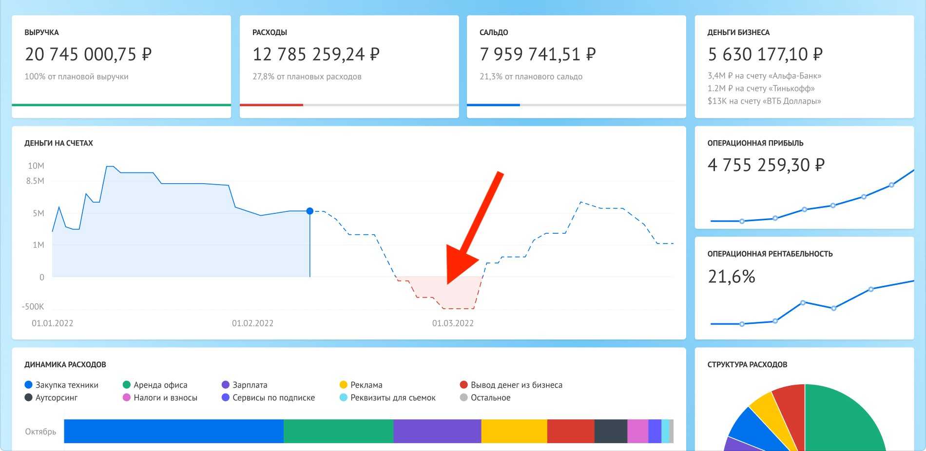 Количество продаж не всегда означает стабильную финансовую обстановку. Например, компания продает оборудование или товары по постоплате. То есть контрагенты забирают товары, а деньги отдают через 2–3 месяца. В определенный момент какая-то часть партнеров может прекратить платежи. В результате у компании происходит кассовый разрыв.