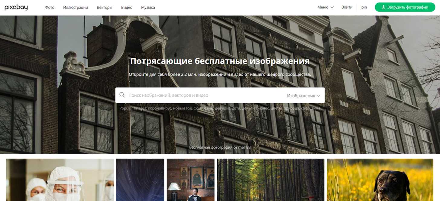 Преимущества: качественный бесплатный фотосток с большим выбором фотографий, изображений и видео высокого разрешения, удобный поиск, скачивать можно без регистрации.