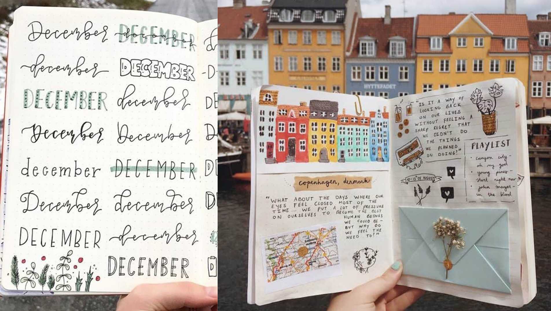 Отдельное искусство, которое часто используется при заполнения ежедневника — это леттеринг. Выводить красивые буквы — расслабляющее, медитативное занятие, но с непривычки может быть непросто. Поэтому сперва лучше подсмотреть какие-то идеи, попробовать копировать, а затем уже создавать свои шрифты.