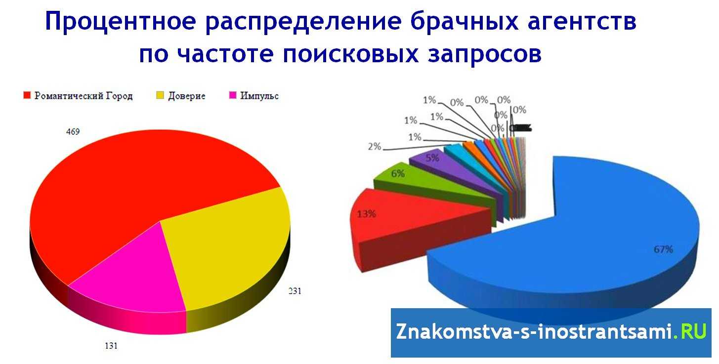 В Москве — совершено 10 169 поисковых запросов в Яндекс. По лучшим брачным агентствам, находящимся в ТОП, сделано 8 754 запросов — это составляет 86%.