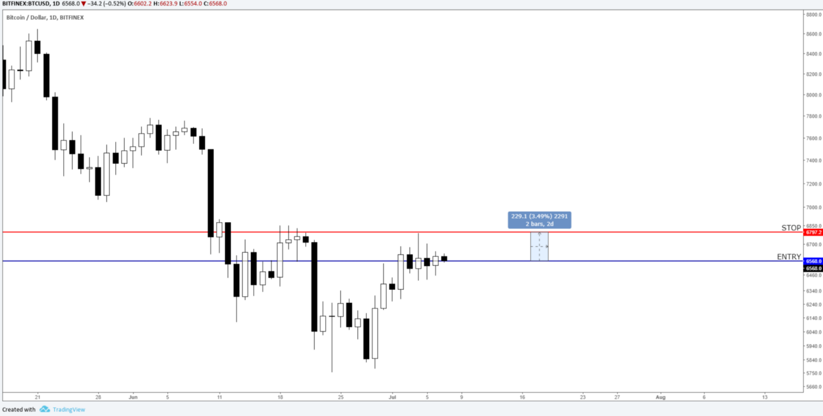 Предположим, два трейдера, Тим и Уэйд, торгуют пару XBT/USD с бессрочным свопом на BitMEX. У них одинаковые капитал, сумма риска и цена входа. Единственное их различие — в размещении стоп-лосса.