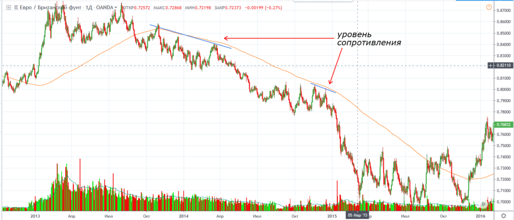 Словом, цвет стрелки и цвет линии тренда должны совпадать.