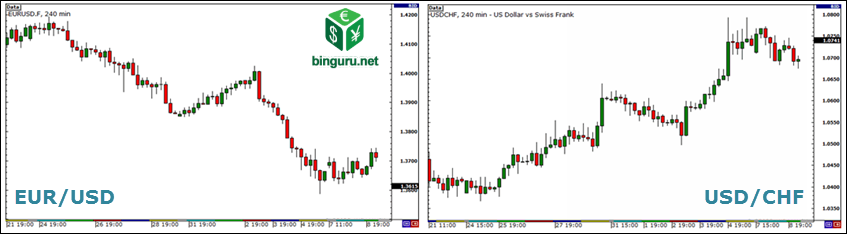 Проиллюстрируем это на примере нескольких пар, выделив USD/CHF: