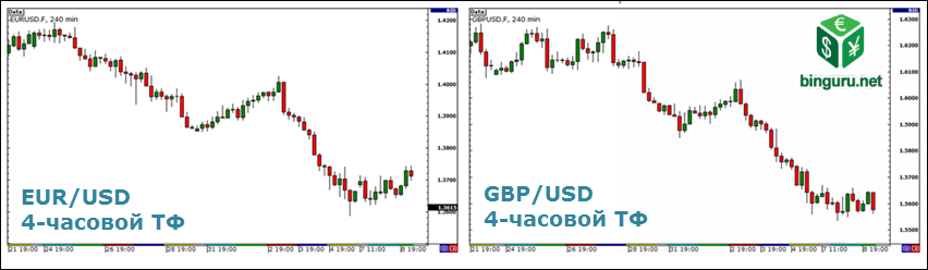Предположим, мы взяли две пары на 4-часовом таймфрейме, EUR/USD и GBP/USD: