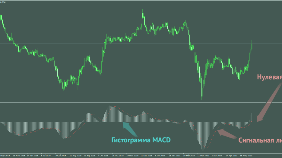 Дело в том, что уровень 0.00 в индикаторе является своего рода точкой равновесия: если гистограмма индикатора находится выше него — тренд бычий, а если ниже него — тренд медвежий.