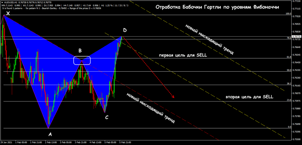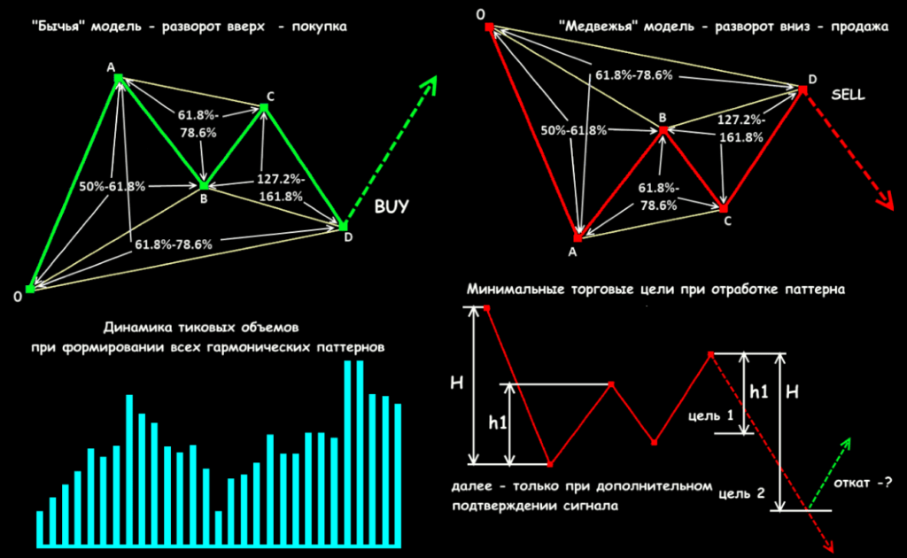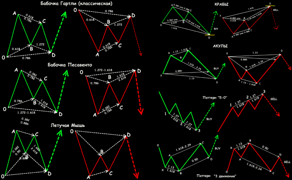 Трейдеры впоследствии заменили слово «гармонические» на имя автора, а «паттерн» на конкретное название фигуры. Первая из них, собранная из отрезков, проведенных по точкам на уровнях Фибоначчи, напоминала бабочку.
