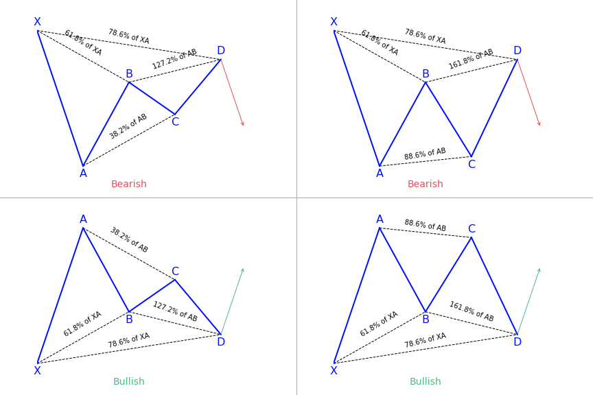 Due to this, there are four major XABCD chart patterns that are most popular. They can be either bearish or bullish. The four main patterns include Gartley, Butterfly, Crab and Bat.