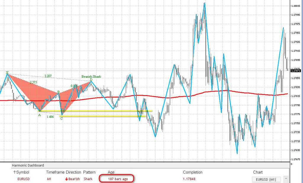 Существование «границ хода» тренда определяет важный параметр «Age», определяющий время, прошедшее с момента формирования паттерна. Например, фигура Cypher («шифр»), которую трейдеры часто называют «Снайпером» за частую отработку сигнала, уже образовалась. Трейдер может попробовать занять позицию в лонг, учитывая расцветку фигуры, указание ожидаемого направления движения котировок в таблице (плюс на графике будет подпись Bullish).