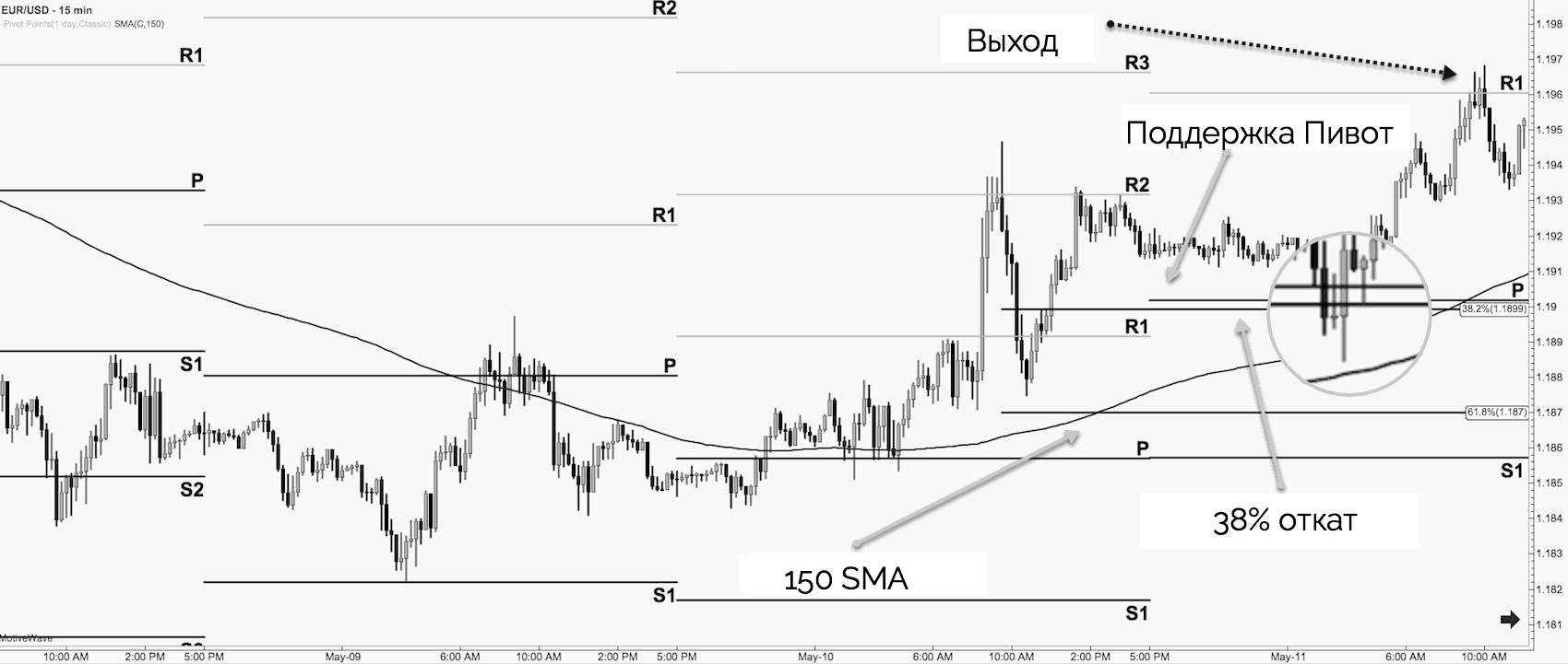 Торговля по точкам Пивот в сочетании с прайс экшен
