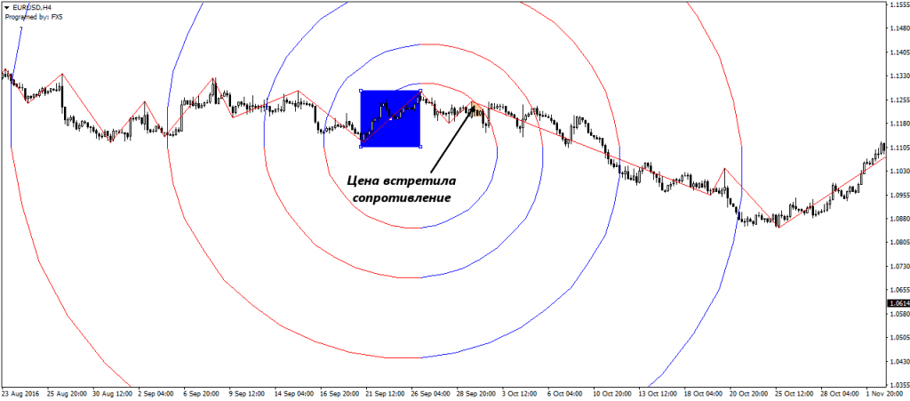 Как использовать Спираль Фибоначчи в Форекс-трейдинге? Графическая конфигурация этой модели представляет собой некую формацию, похожую одновременно на Дуги Фибоначчи и временные зоны, также названные в честь прославленного математика. Таким образом, спиралевидные витки могут иногда применяться трейдером как линии support/resistance (рисунок 6).