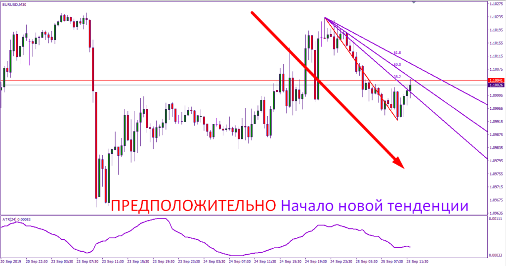 То есть эти линии можно брать за поддержки и сопротивления и смотреть ещё момент смены тренда, когда график цены пересекает линию 1х1.