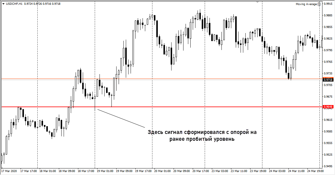 Для дополнительной страховки можно использовать горизонтальные уровни. Если паттерн опирается на сильную поддержку или сопротивление, сила сигнала возрастает.
