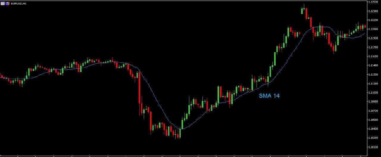 Сумма цен закрытия за 14 часов (дней или любых других единичных периодов) / количество периодов (в данном случае 14).